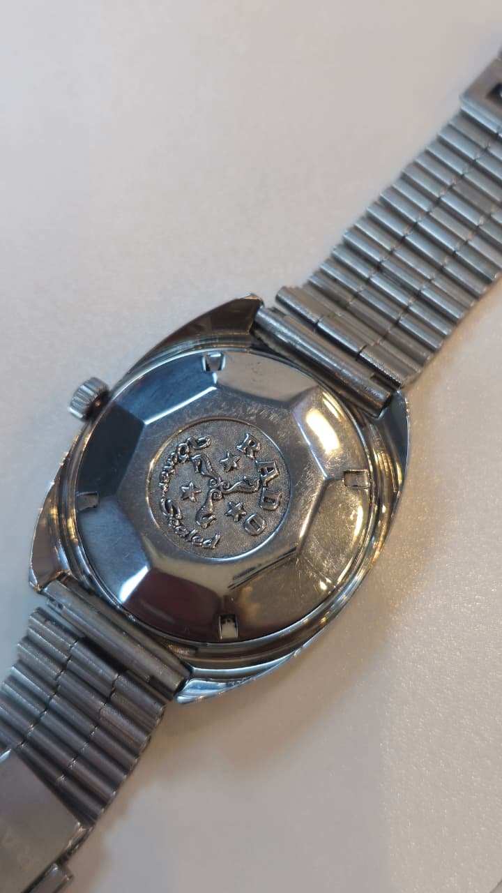 Rotating Anchor: Like many vintage Rado automatics, it often includes a rotating anchor logo at the 9 or 12 o’clock position, which was a functional indicator that the watch was an automatic model.