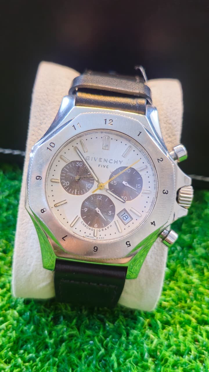 Givenchy Five Stainless Steel Chronograph Quartz movement Switzerland 🇨🇭 made Men’s watch (Used)