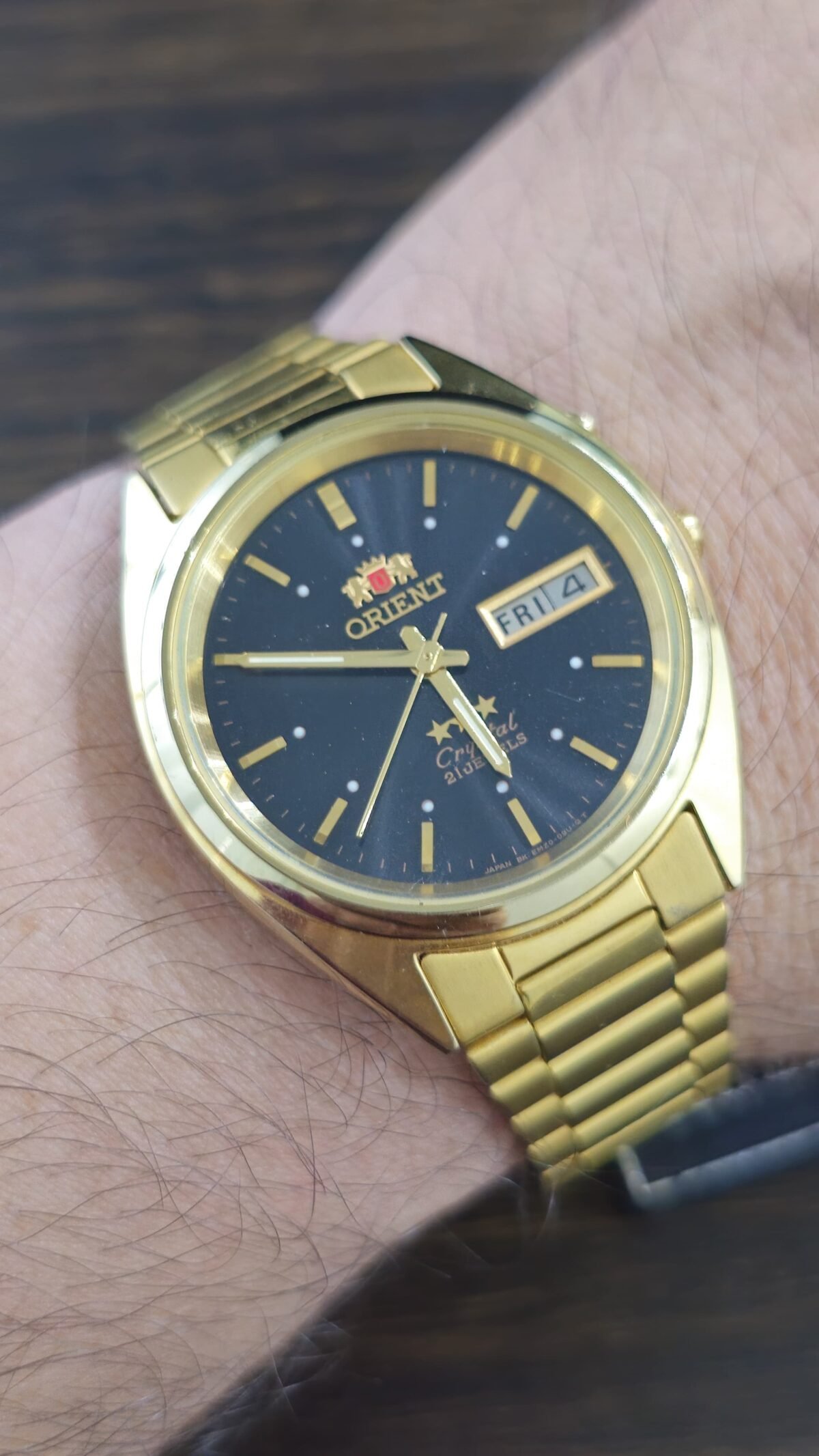 Orient FAB00002B Men’s 3 Star Standard Gold Tone Black Dial Automatic Watch, Black, Automatic Watch (New)