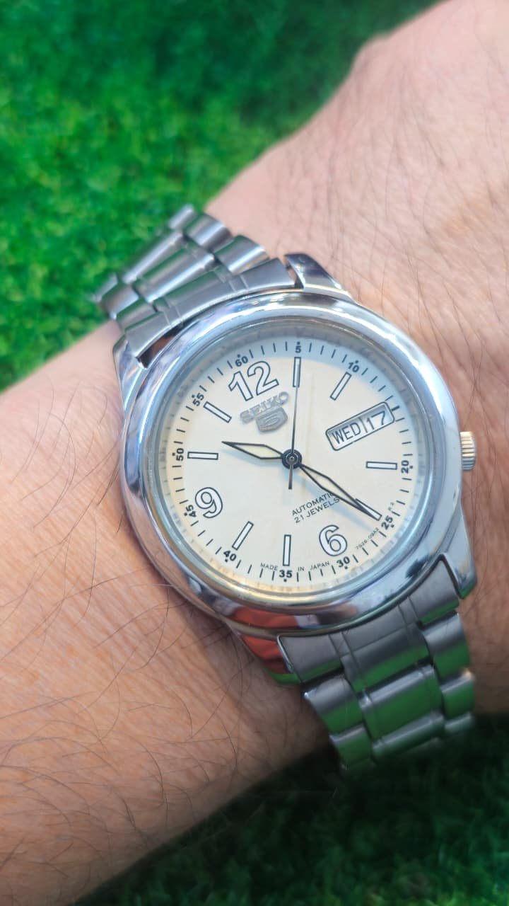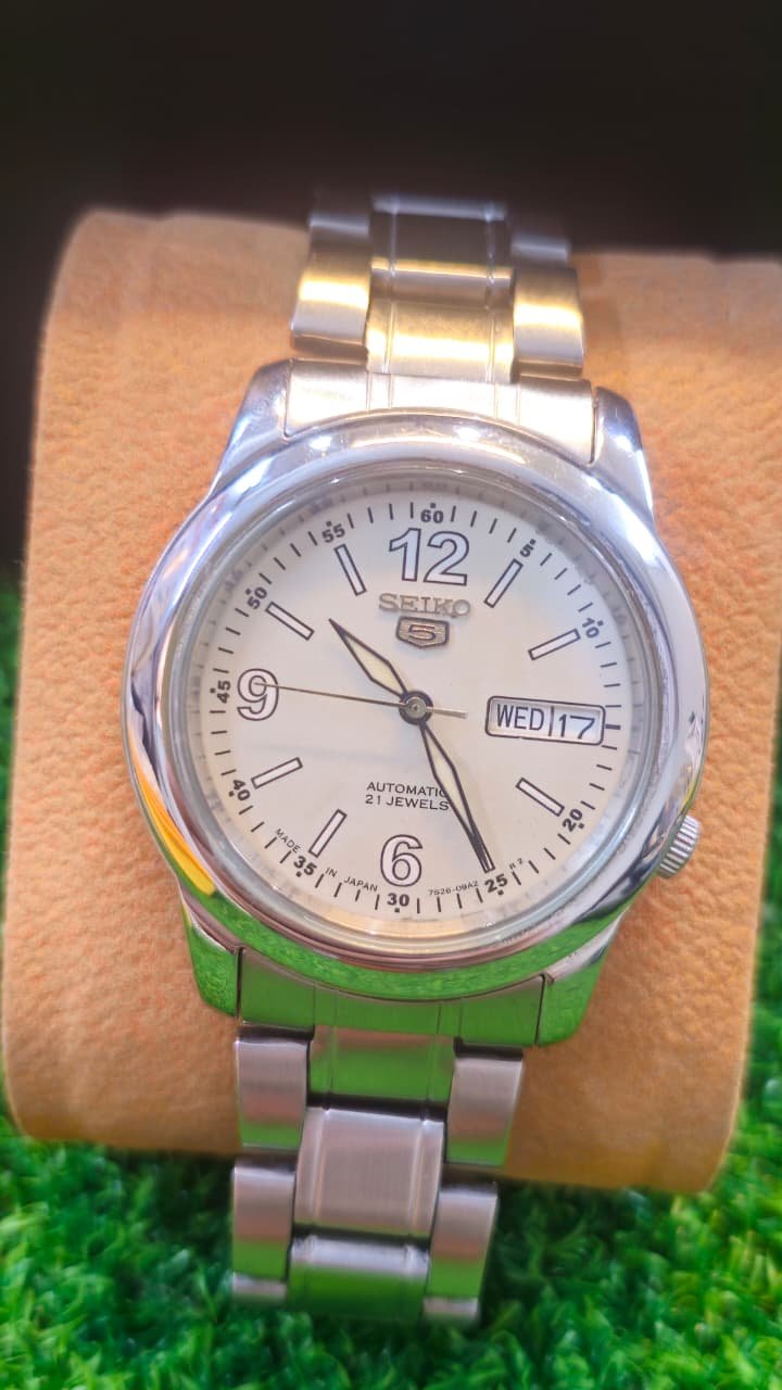 Seiko 5 Automatic 7s26 caliber 21-jewels japan made White 39mm dial watch for Men’s (Used)