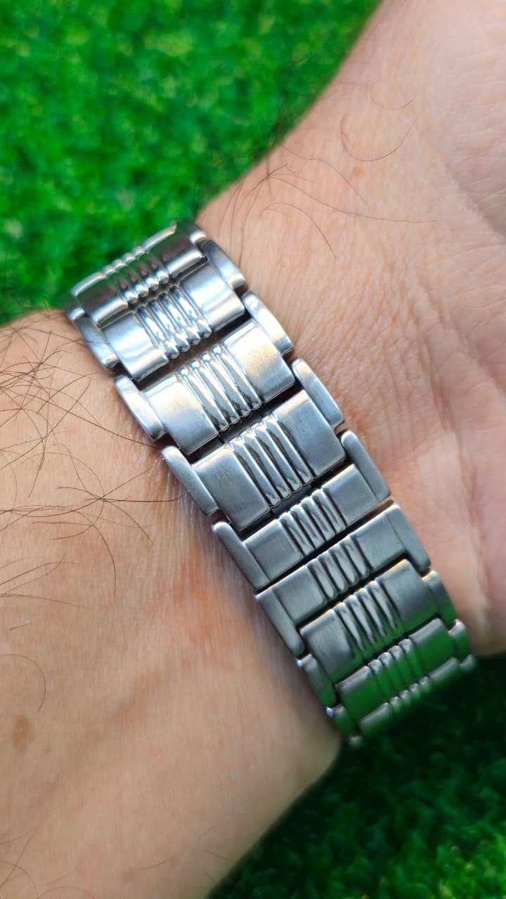Dial: White face with elongated Roman numeral markers and a date window at the 4 o’clock position.