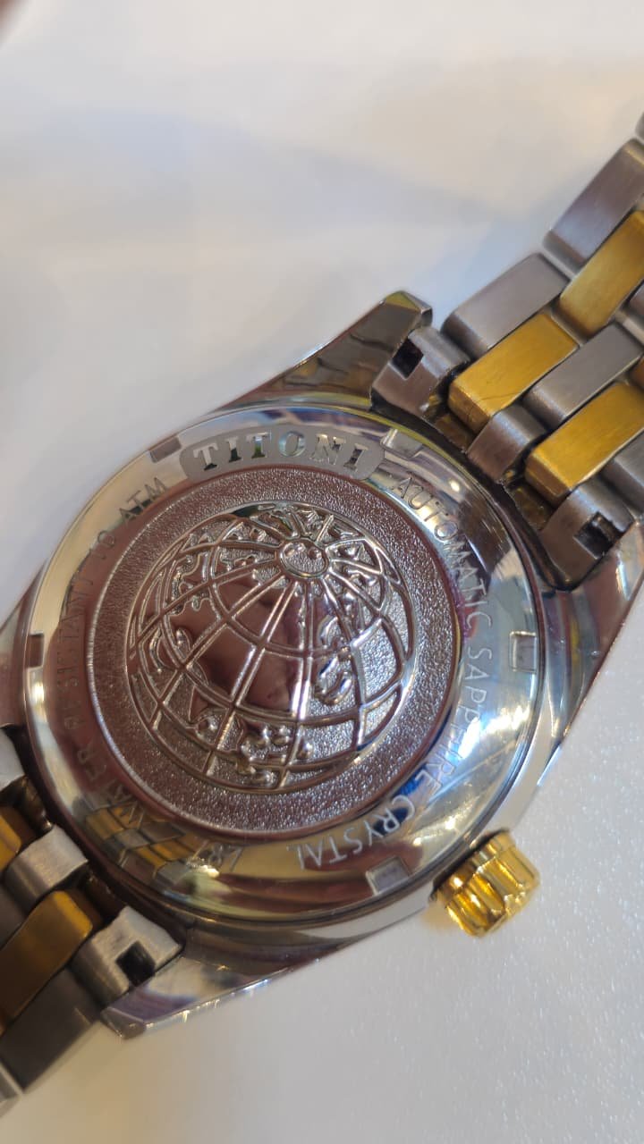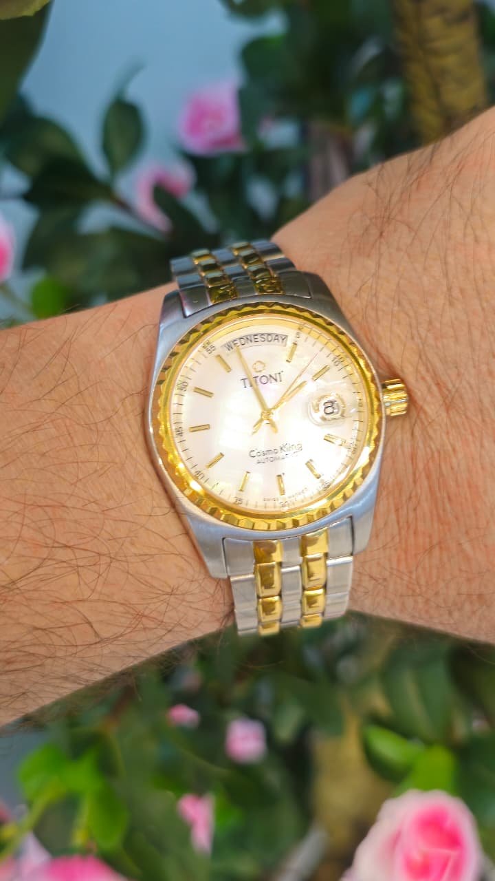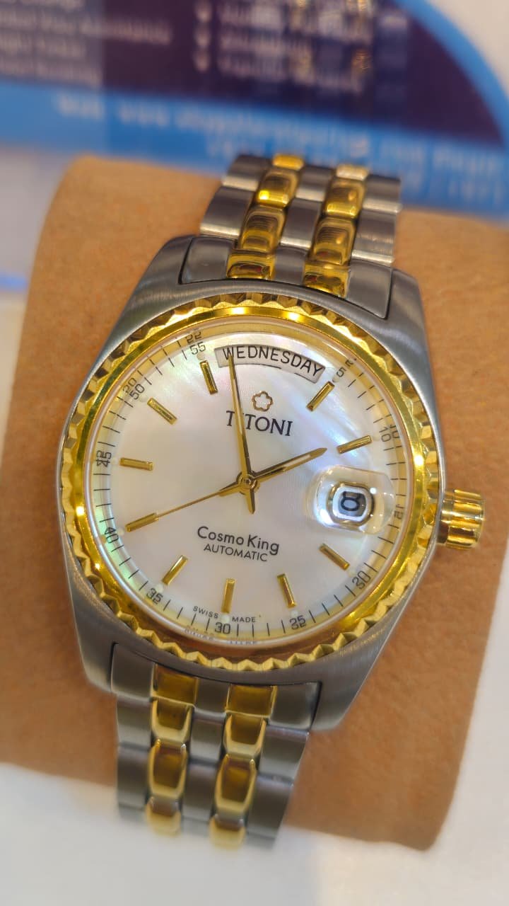 Titoni Cosmo King Automatic, a signature model from the Swiss brand known for its “Day-Date” functionality and classic aesthetic.