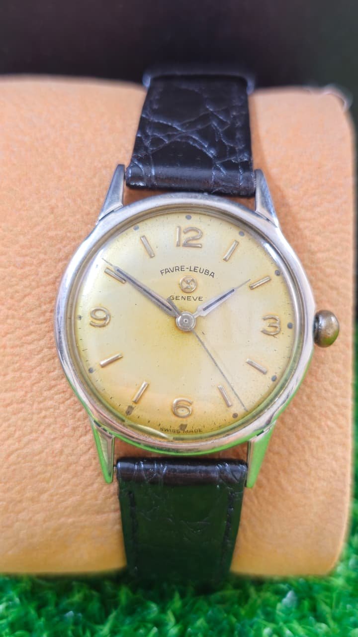 Vintage Favre-Leuba Geneve wristwatch, a classic model from one of the world’s oldest Swiss watchmaking brands. Based on its design characteristics—such as the sub-second dial or simple hand-winding layout and the “Swiss Made” marking—it likely dates back to the 1950s.