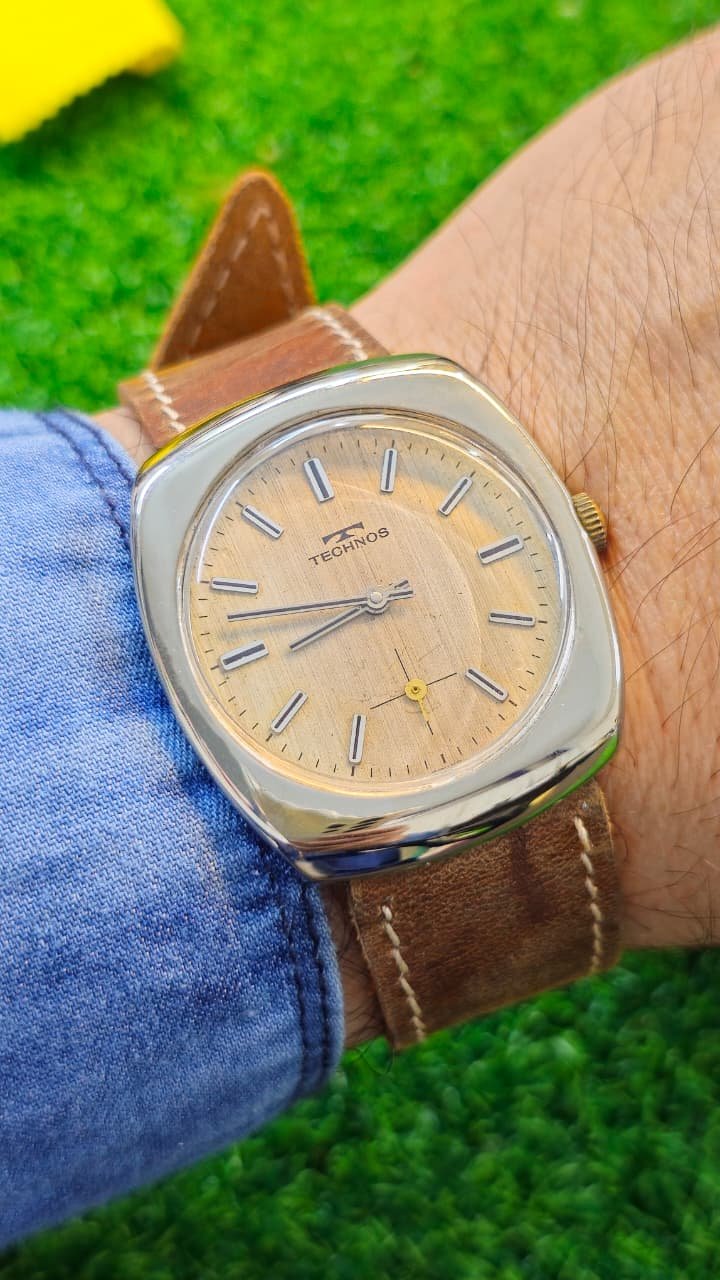 Vintage Technos watches with this square style and small seconds are collector’s items, with prices varying based on condition and specific internal movement.