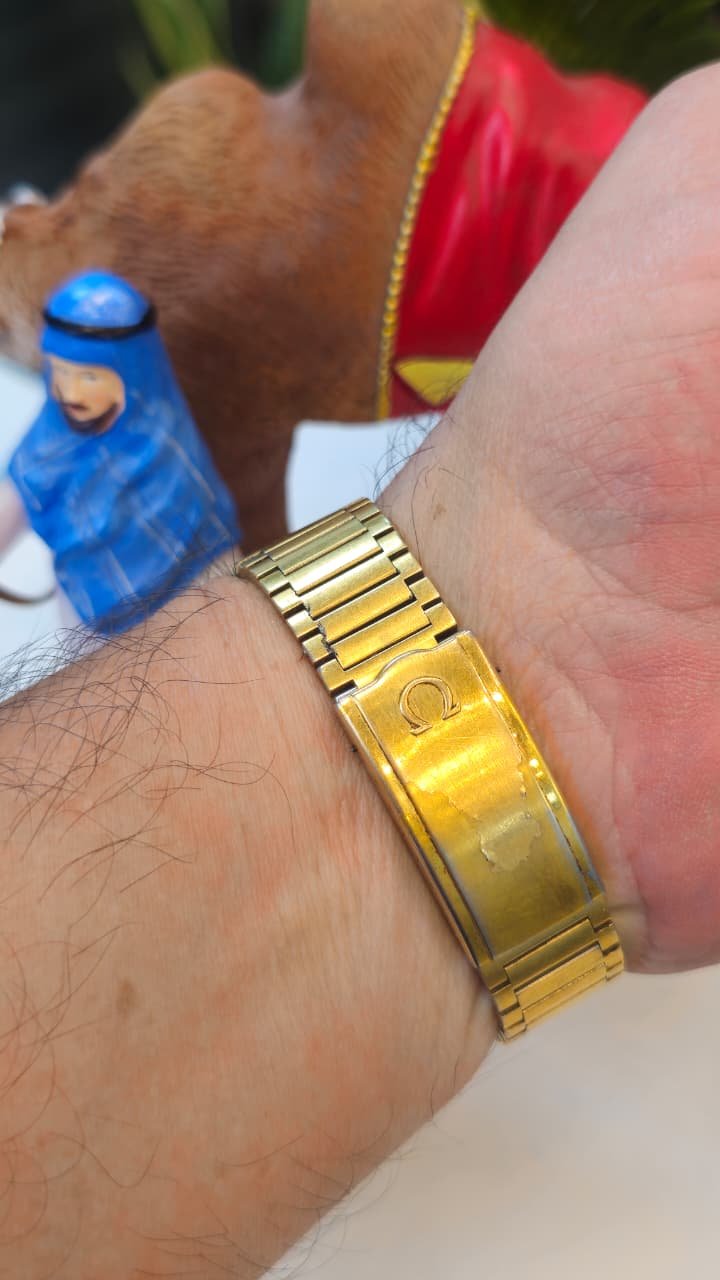 Vintage Omega Seamaster Automatic Day-Date, a gold-plated timepiece typically dating from the late 1970s. Based on its design and features, it is identified as Reference 166.0216.