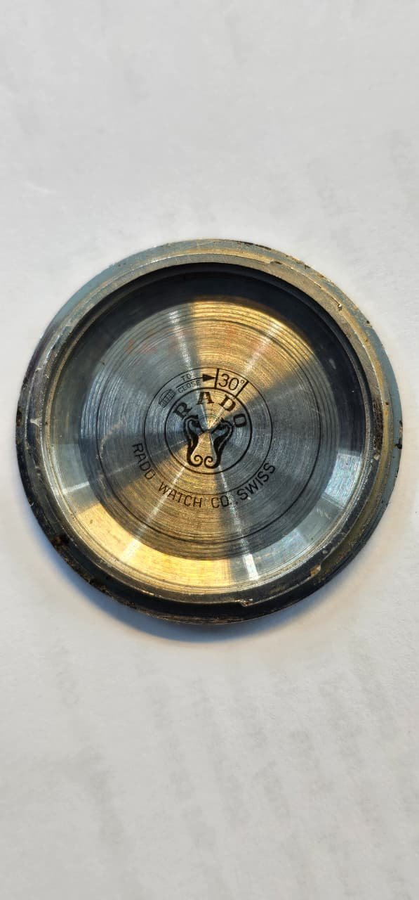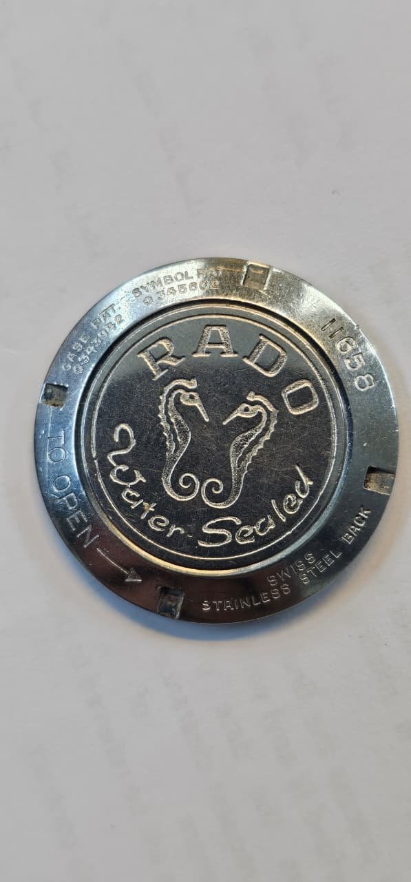 Case back closed screw back Rado signatured