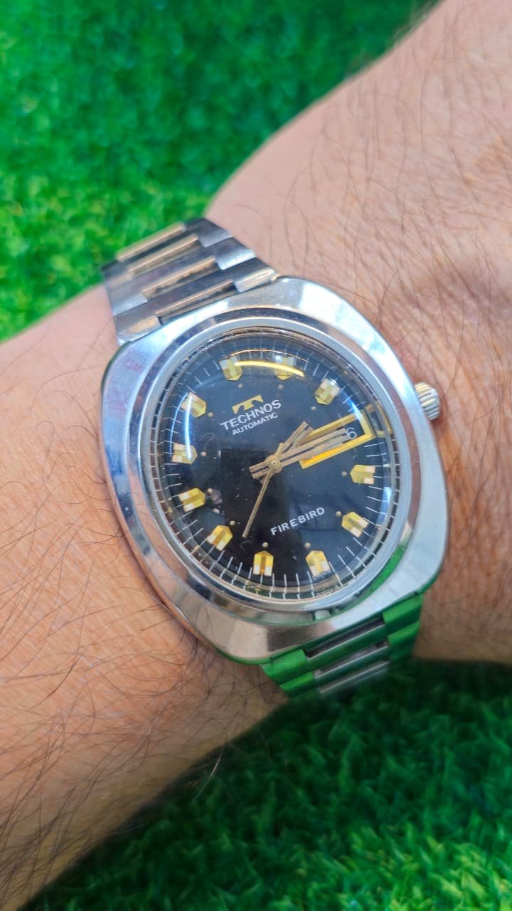 Vintage Technos Firebird, a rare Swiss-made automatic timepiece dating back to the 1970s.