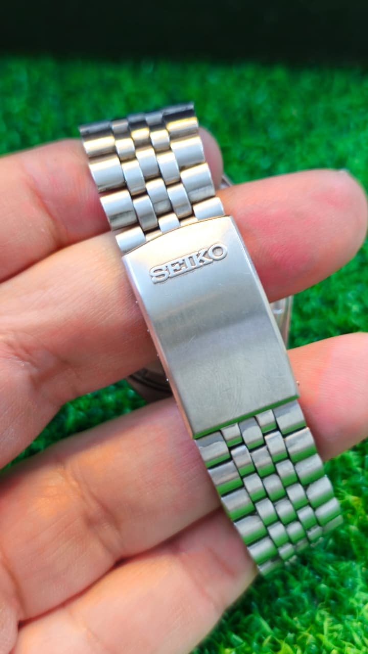 This particular model is a vintage sports watch popular among collectors for its history as one of Seiko’s early water-resistant lines.