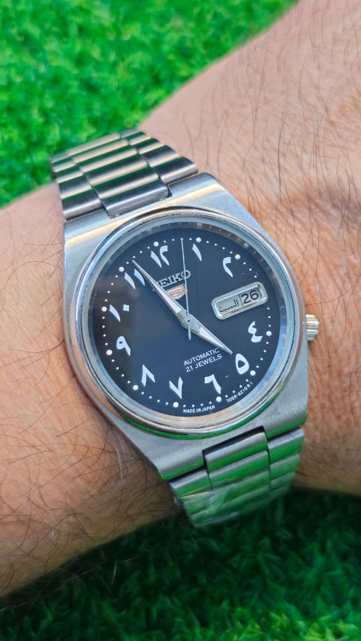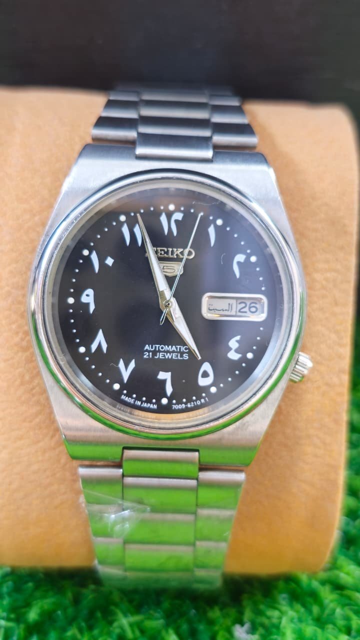 Vintage Seiko 5 Automatic 7009 caliber 21-jewels Black Arabic Numerical Dial Japan made Men’s watch (Used)