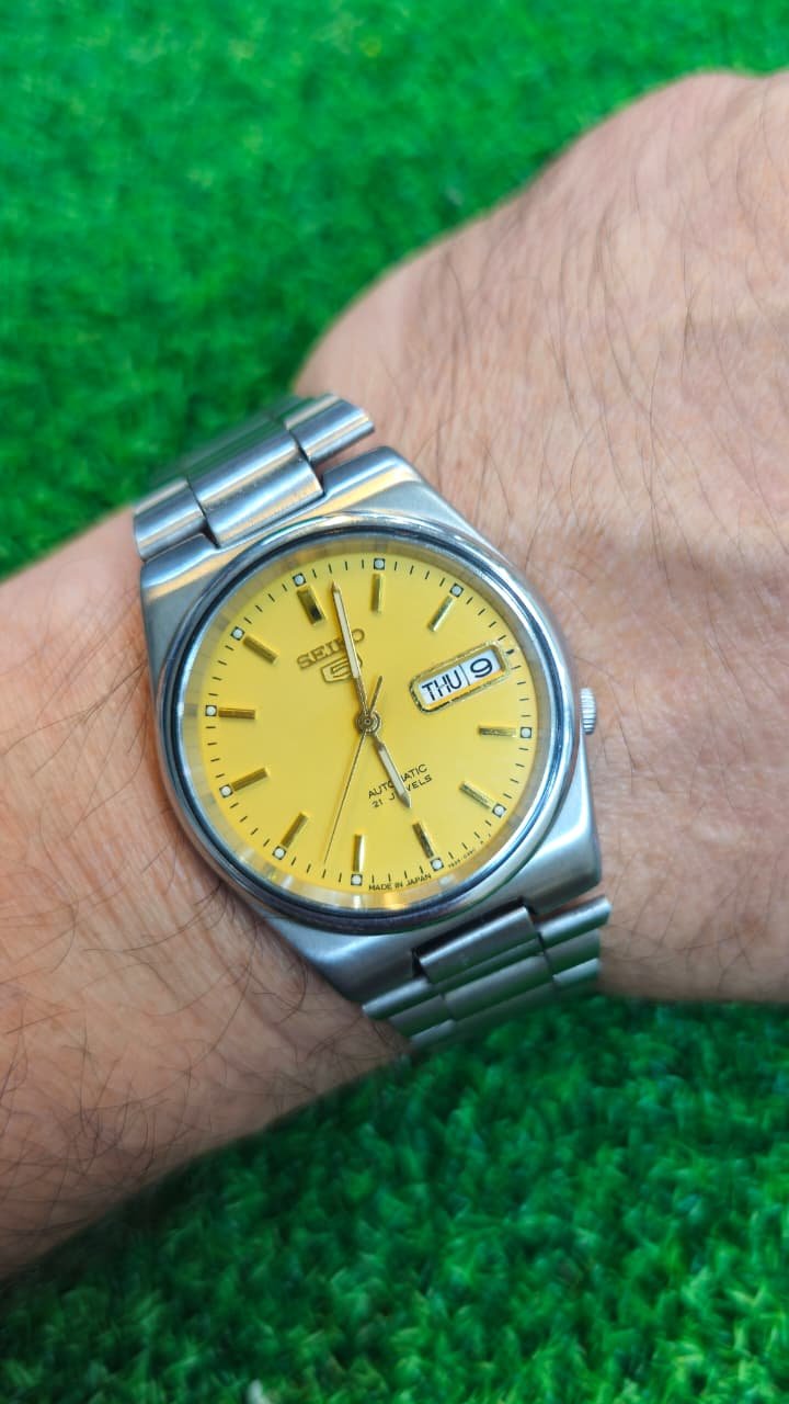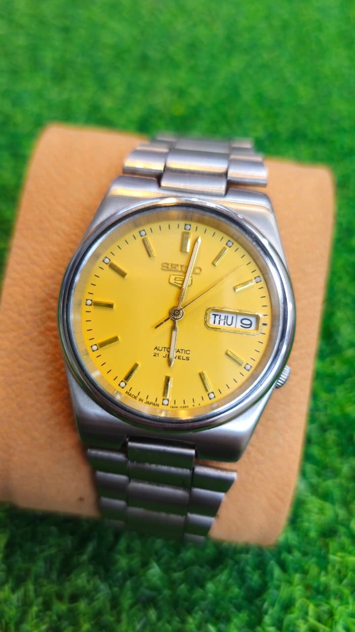 Vintage Seiko 5 Automatic 7s26 caliber 21-jewels Golden Dial Japan made Men’s watch (Used)