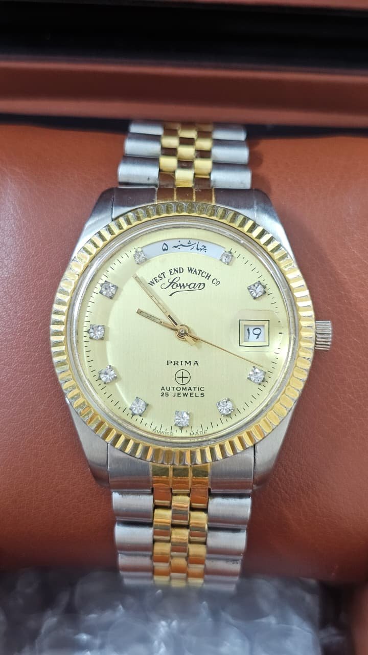 West End Watch Co. Sowar Prima Automatic 25 Jewels model, a classic timepiece from a Swiss brand with a long history, particularly popular in the Middle East and South Asia. The specific watch is vintage model, likely from the 1970s.